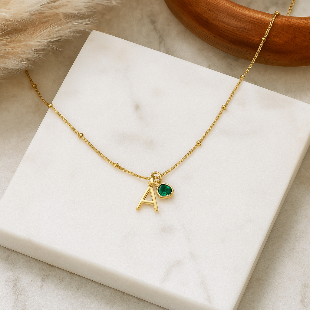 This delicate necklace is the perfect piece to carry a special initial and the unique brilliance of your birthstone. Crafted with a fine 18k gold-plated chain, it combines elegance, minimalism, and a personal touch that makes it an unforgettable gift.