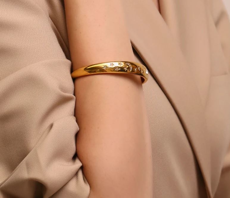 Moon and Star Jewelry Set ✨ | Gold-Tone Stainless Steel Bracelet, Ring, and Earrings | Elegant and Durable Jewelry | Gift for Women